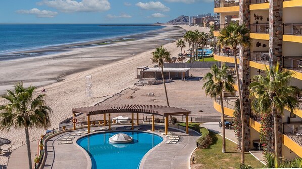 Dit appartement heeft twee slaapkamers en twee badkamers en bevindt zich in het prachtige Sonoran Sky Resort. Het Sonoran Sky resort is een van de nieuwste luxe resorts op Sandy Beach in Rocky Point. Het Sonoran Sky heeft een full-service spa, aquabar, ultramodern fitnesscentrum, waterglijbaan, zwembaden aan het strand, jacuzzi en een supermarkt.