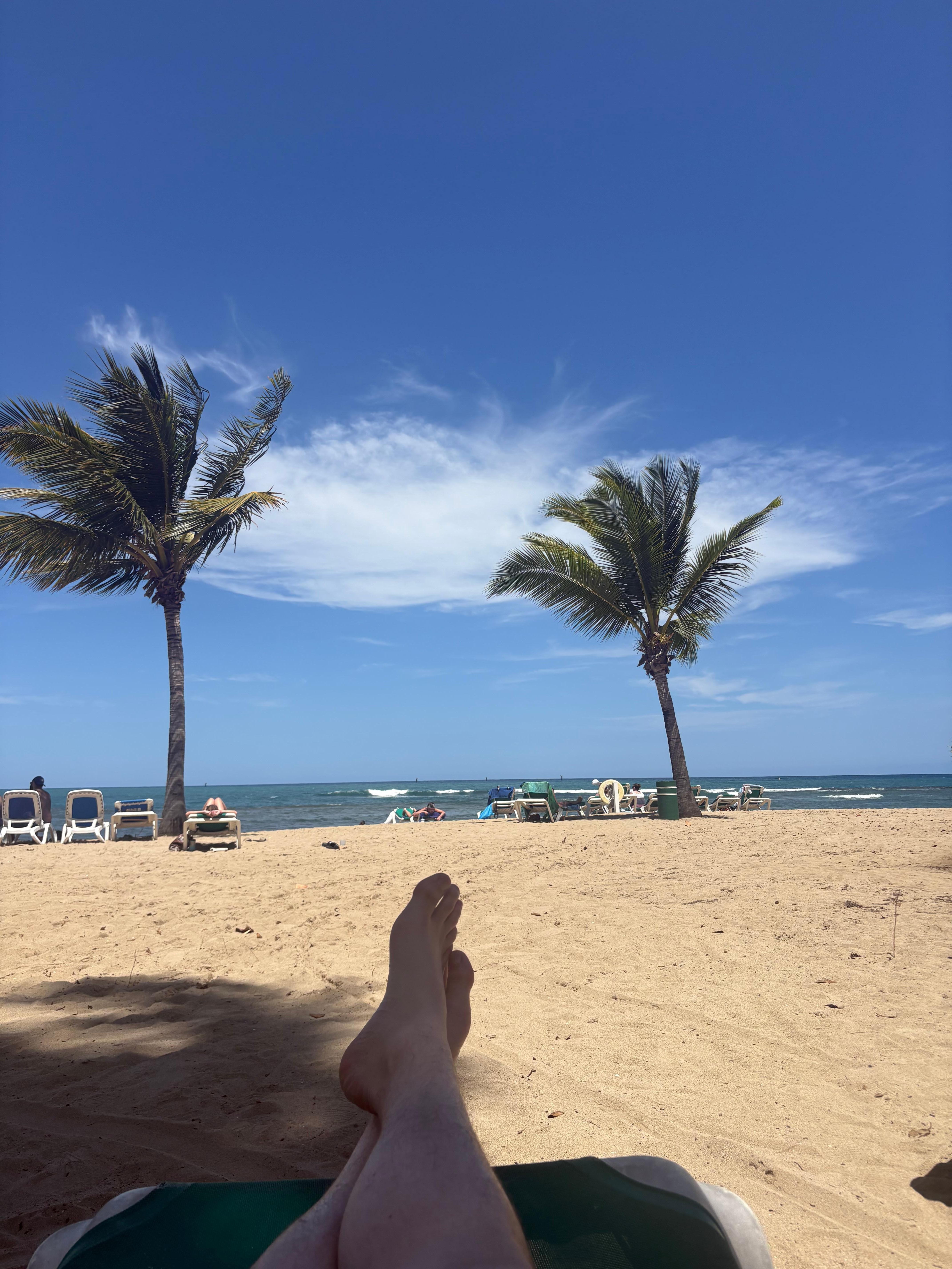 The beach is so pretty with lots of palm trees. Easy to walk around. Staff is so friendly. Perfect for couple or family.