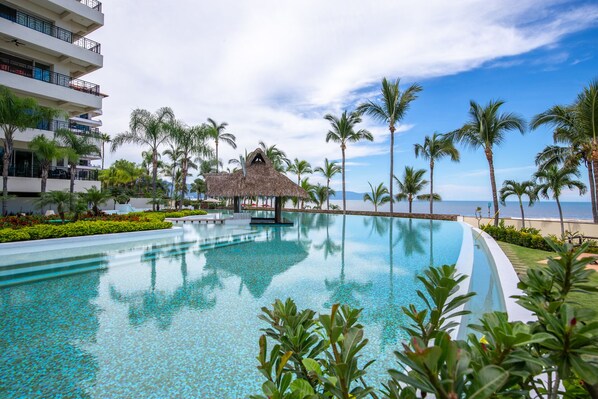Breng uw vakantie in Mexico door in dit prachtige strandhotel, gelegen in het hart van de romantische zone van Puerto Vallarta en het beroemde strand van Muertos. Playa Los Muertos is het populairste strand in Puerto Vallarta en een geweldige plek om foto's te maken! Met een prachtig wit zandstrand, sprankelende zonneschijn, kleurrijke parasails hoog boven het blauwe water van Banderas Bay en spectaculaire zonsondergangen, biedt Los Muertos Beach de perfecte achtergrond.] Met drie slaapkamers en drie badkamers, royale woonkamer, eetkamer, keuken en balkons, is het de ultieme vakantie voor familie of vrienden.
