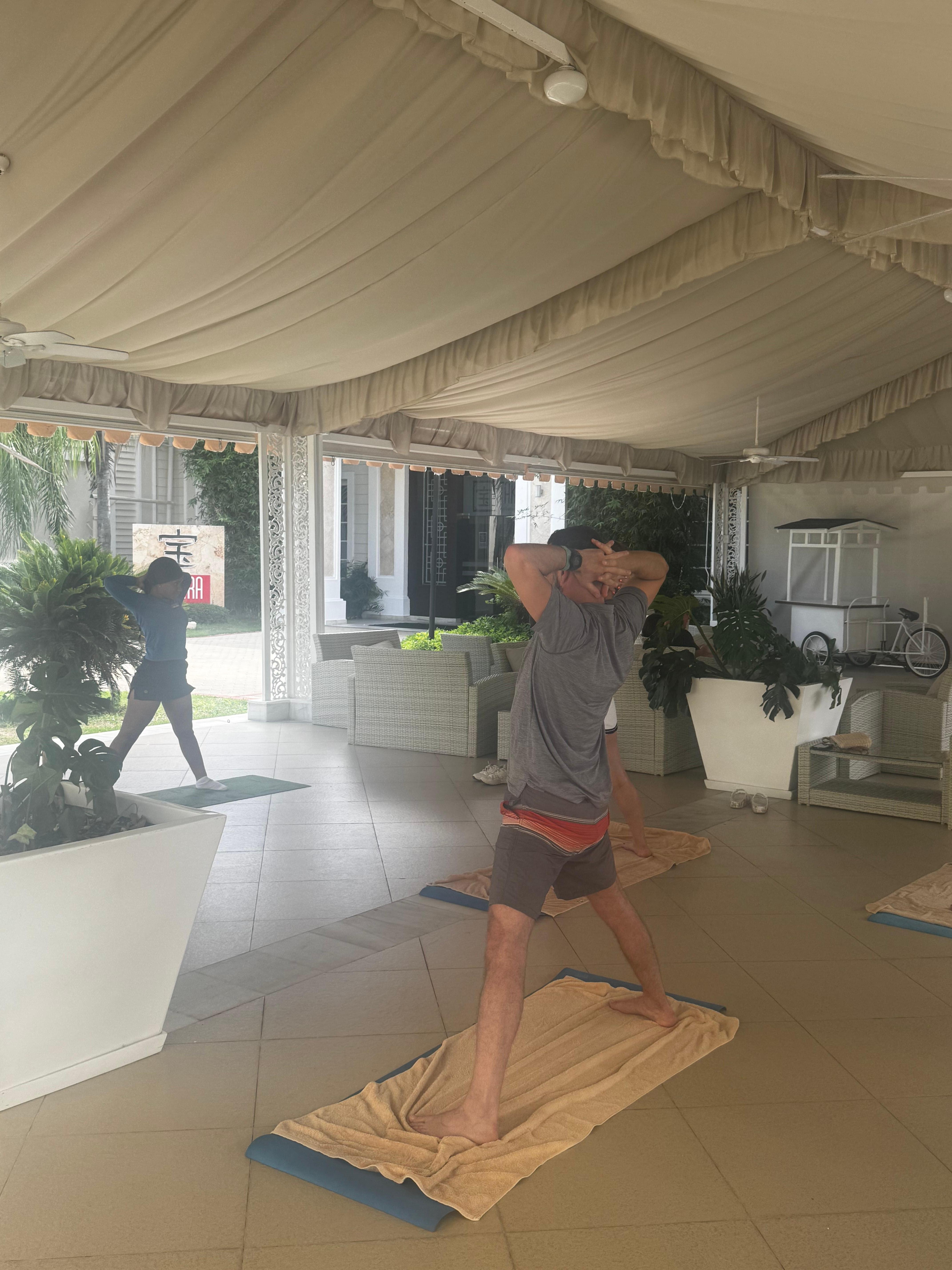 Our room and bathroom were spacious, if a bit dated, but clean and comfortable. The beds are firm, the AC worked perfectly, and the fridge was restocked daily. One thing to note: the buildings are three stories with no elevators. We didn’t mind being on the top floor, but others did—something to be aware of when booking.