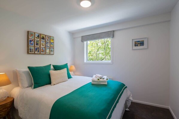 Second bedroom with king bed or two singles — ideal for friends or family