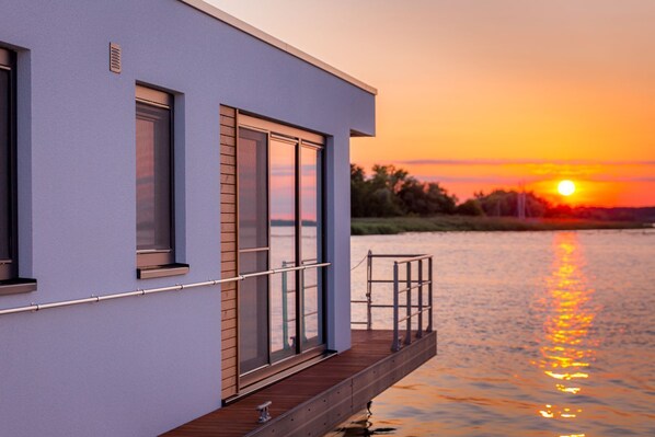 Zijn huisdieren welkom bij Kranichnest Schwimmhaus - Kranichnest Schwimmhaus: lake view, terrace, wood-burning stove?