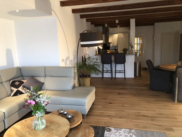 Woonkamer met open keuken: