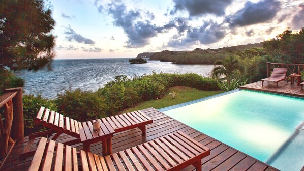 De villa heeft een eigen zwembad met uitzicht op de zee met een ruime dek, lounge stoelen, fauteuils en zwembad drijft. Een trap leidt naar de haven voor een gemakkelijke toegang tot zwemmen, snorkelen en kajakken.