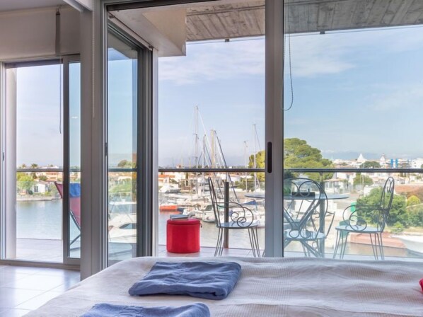 Appartement 3-kamers 52 m2 op de 2e verdieping, op het zuidwesten gelegen. Doelmatig ingericht: woon-/eetkamer met TV. Uitgang naar het balkon. 1 kamer met 1 2-pers bed (135 cm). Uitgang naar het balkon. 1 kamer met 1 x 2 stapelbedden (90 cm). Open keuken (3-pits kookplaat, oven, afwasmachine, magnetron, diepvriezer). Douche/WC. Geen verwarmingsmogelijkheid. Balkon 12 m2. Terrasmeubelen. Mooi panoramazicht op het zwembad, het landschap en het kanaal. Ter beschikking: wasmachine. Parkeerplaats nr. 29 (overdekt). TV alleen ES, DE. HUTG003079 // Reg. Nr.: ESFCTU000017019000379559000000000000000000HUTG0030797