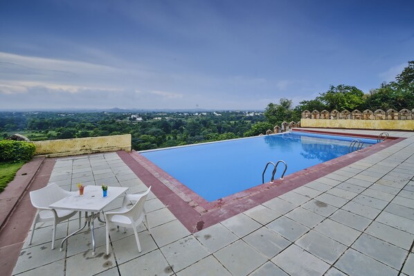 Hotel met een buitenzwembad en een restaurant in Nathdwara