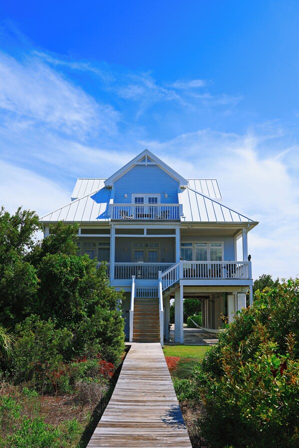 Welkom bij THE HAMPTON HOUSE ...... Stap in je eigen, mooie STRANDFRONT-huis. Ligt aan de noordkant van Harbor Island, South Carolina op een slaperig strand waar zachte golven over de kust kruipen. Er is een reden waarom we het meest gehuurde strandhuis van Harbour Island zijn. UITZICHT UITZICHT UITZICHT !!! Geen enkel huis op het eiland komt in de buurt om u een adembenemend uitzicht te bieden vanuit ons huis. Ontspan op de veranda en bewonder de surrealistische laaglandmoerassen. Geniet van de ontzagwekkende St Helena Sound en de Atlantische Oceaan vanaf de veranda. Geniet van het schilderachtige uitzicht op de Harbour River vanaf het noordelijke uiteinde van het huis. Bekijk adembenemende zonsondergangen vanaf uw balkon die alleen kunnen worden omschreven als surrealistisch. Mensen arriveren een uur te vroeg om een plekje op het strand te bemachtigen om het te zien neerkomen, maar je hebt een stoel op de eerste rij vanaf je veranda! Elke kamer biedt een ongeëvenaard uitzicht. Serieus, kies een kamer en glimlach :). Het strand bij ons huis is schaars, stil en kalm. RELAX RELAX RELAX. Er zijn geen huizen bij ons in de buurt. Het voelt alsof je op je eigen privé-eiland bent. Het huis heeft een eigen promenade naar het strand. Loop rechts de achterdeur uit naar het paradijs. Het huis heeft 4 slaapkamers, 3 1/2 bad plus buiten verwarmde douche voor het afspoelen van het zout en zand, 12 personen, Downstairs Master (Beachwalk) op suite met koning en uitzicht op het strand en toegang tot gescreend in veranda. Boven Master (Ocean View) op suite met koning en een eigen balkon met een adembenemend uitzicht op het geluid, de oceaan en de rivier de haven. Queen slaapkamer (zonsondergang) met dubbele stapelbedden met een prachtig uitzicht op de Harbour Bridge. Nog een Queen Bedroom (Harbor Marsh) met dubbele stapelbedden met een prachtig uitzicht op de moerassen. Open vloerconcept met keuken (roestvrijstalen apparaten), eetkamer en woonkamer allemaal met prachtig uitzicht. Wasmachine / droger, garage voor vier wagens, inclusief golfkar GRATIS! Een voertuigpas naar SC State Parks (inclusief Hunting Island) is ook inbegrepen !! Gescreend in veranda met ontbijttafel. Eet je pannenkoeken op en zie hoe de dolfijnen de garnalenboten achtervolgen terwijl ze voorbij glijden. Neem uw privépromenade naar het strand en speel, vis, kajak, fiets of ontspan gewoon. Strandhanddoeken, strandstoelen en parasols, golfplaten, strandspeelgoed, 2 oceaan-kajaks, hengels en haspels en diverse sportartikelen aanwezig. Groot gemeenschappelijk zwembad, tennisbanen, basketbalvelden, fietsverhuur, een fitnessruimte ... leuk plezier. Of neem de golfkar naar het zuidelijke uiteinde van het eiland voor een strand dat zo geweldig is dat het moeilijk te beschrijven is. Atlantische golven, brede wind geveegde duinen en verbazingwekkende zwermen vogels nestelen op de kust. Het lijkt op iets dat rechtstreeks uit National Geographic komt! Het eiland ligt op slechts een paar minuten rijden van het historische Beaufort, de op een na oudste stad van South Carolina. Winkelen, eclectische restaurants, prachtige jachthaven, enkele van de beste golfbanen van het lage land allemaal binnen enkele minuten van uw droomhuis. Hilton Head, Savannah en Charleston, allemaal op slechts een klein eindje rijden. Maak herinneringen met uw gezin die een leven lang meegaan. Kom kijken waar het allemaal om draait !! Ons huis is uw thuis ... welkom bij ... HET HAMPTON HUIS.