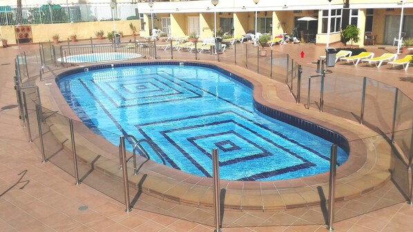 4) Het appartement is gelegen nabij het zwembad (zie foto's) is een klein zwembad dat altijd geschikt is voor kinderen en mensen met een handicap als ondiep
