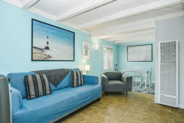 It's cute. It's quirky. It feels like a camp, but it's 100ft to the beach and in the middle of everything Ocean Beach and San Diego have to offer. Within 2 blocks of restaurants, bars, shops, yoga studios, fishing, and surfing. Take advantage of our kitchen for meals, or venture out and sample some awesome San Diego restaurants during your stay here! Start the morning off right with some coffee in the kitchen, or pick up coffee at one of the numerous neighborhood coffee stands and walk two blocks to the beach for a stroll as you watch the surf. We are blocks from some of San Diego's most iconic beach spots. Have a hamburger at Hodad's or get a scoop of ice cream between two flavored freshly made mini-waffles at Lighthouse. Also, eating at the quirky restaurant way out at the end of the Ocean Beach Pier is something that shouldn't be missed. Of course, there is a BBQ grill, and it's always a good time to cook out. After lunch, head back home and take a nap or relax on the deck. If you like shopping, you are virtually 10-20 minutes from any destination in the greater San Diego Metro area. I would suggest starting with the cool little shops a couple blocks away on Newport Ave for the original artwork. At night, you have a number of really incredible options. On one of the nights of your stay, you have to walk down the beach and have a bonfire in one of the beach fire pits. It's an absolute imperative... a must do beach experience. The smell and sound of the ocean, the feel of the sand, the smell of the fire, the taste of the s'mores...... We also have the restaurant Bo Beaujust a couple blocks away for a romantic dinner. Try the lobster risotto. ...and there are so many other great restaurants within walking distance: Kaiserhoff, OB Noodle House, etc For Touristy stuff... well, the beach is two blocks away. Step out on the sidewalk and look to your left. It's that blue thing where the land ends. SeaWorld is a five minute drive. The World Famous San Diego Zoo is a ten minute drive away. Disneyland is a ninety minute drive.