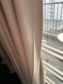 The room was not as advertised. It was outdated and had a strong smell of mold and mildew, despite the listing clearly stating and showing a newly renovated space. The drapes and bed linens appeared dirty, and the chair was visibly stained.