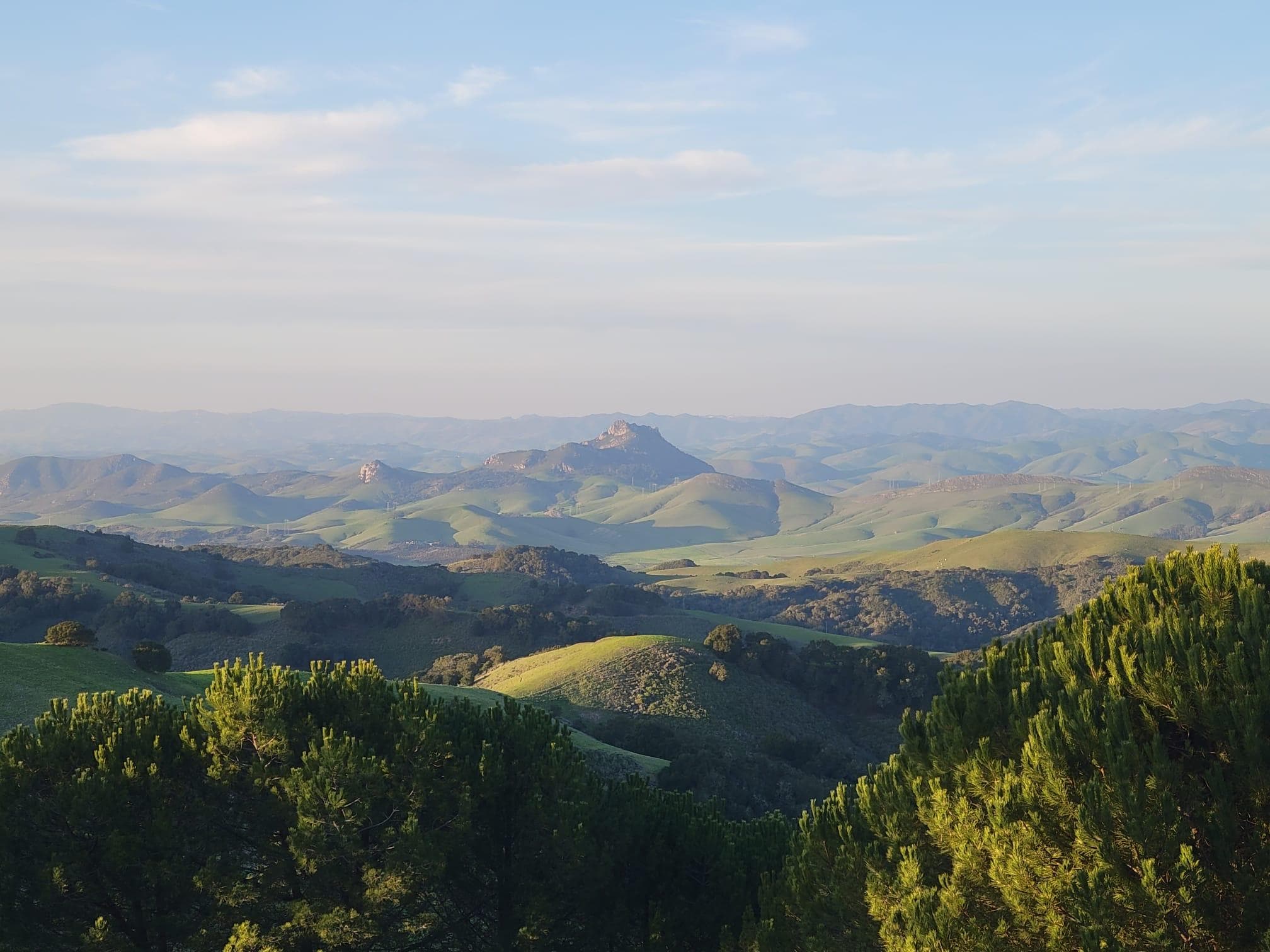 Foto's doen geen recht aan de onvergetelijke uitzichten op de bergen op de Stille Oceaan, Seven Sisters (uitgestorven vulkanen), glooiende heuvels, bergen, valleien en flikkerende lichten van San Luis Obispo.