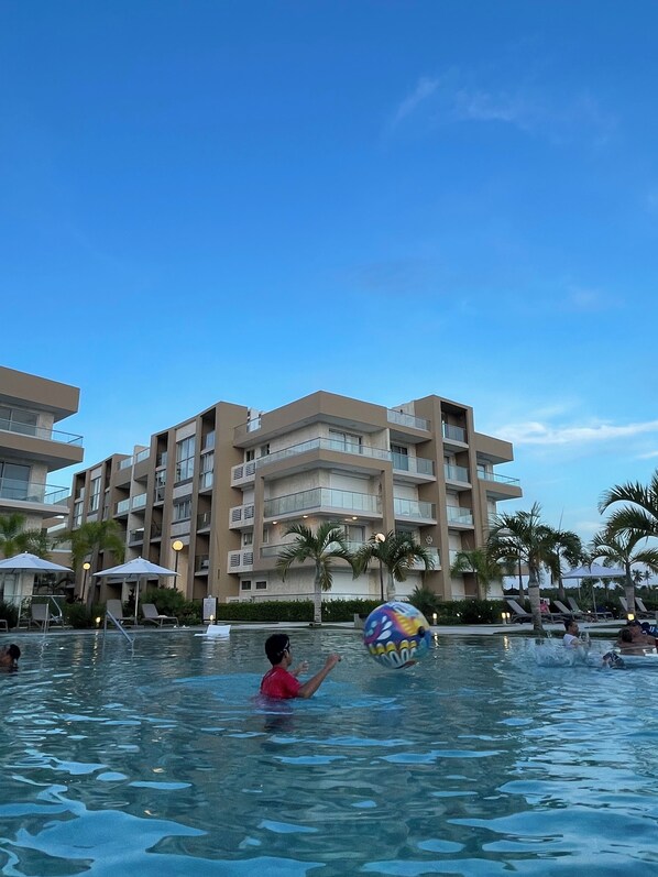 Appartement bij het strand, met een buitenzwembad