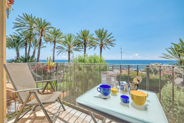 Dit charmante appartement met balkon ligt midden in het groen en biedt een prachtig uitzicht op zee en de mogelijkheid om buiten te eten. Dit prachtige appartement in het rustige deel van de kuststad Sanremo ligt op 8 minuten lopen van de kust. Het is een modern appartement met twee slaapkamers op de eerste verdieping met een eigen balkon, dat comfortabel plaats biedt aan een groep van 6 personen. Bij binnenkomst wordt u verwelkomd door een levendige open woonkamer die smaakvol is ingericht met een bank, een eettafel en een flatscreen-tv. Deze karakteristieke woonkamer gaat naadloos over in een goed uitgeruste keuken met een inductiekookplaat, een koffiezetapparaat, een magnetron, een vaatwasser en een koelkast met vriesvak. De woonkamer heeft een openslaande deur naar het ruime balkon, waardoor het appartement luchtig en licht is. Het balkon heeft een eethoek en is een perfecte plek om te ontspannen en te genieten van uw maaltijden te midden van de verfrissende zeebries en het prachtige uitzicht. Slaapkamers Slaapkamer 1: Deze kamer heeft een raam. Ze is ingericht met een tweepersoonsbed en een kledingkast. Slaapkamer 2: Een lichte kamer met een tweepersoonsbed en een kledingkast. Ze heeft ook een raam.