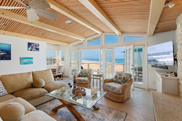 I feel that we should be credited for some of the cleaning fee considering the coffee pot had old coffee in it, the carpets had stains, which I found Resolve in the pantry and cleaned the biggest stains myself. For that expensive price, none of that should be the case. This page will not let me upload the pictures.The beds and linens were very comfortable and nice; the couch could use some better cushions (not super comfortable) and the tv in the smaller bedroom needs a definite update. Streaming any channels was horrible. The smaller bathroom needs a new shower head due to very little water pressure and an extremely long time to heat up. The hot tub needed a new part to heat it up, which was repaired that day we called. The beach is filled with tar and the house is less than 20 yards from railroad tracks. Not worth the nightly price we paid. A credit is requested.