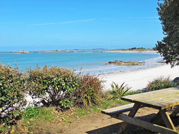Klein rijtjeshuis "Ty Kerveal", eenzijdig aangebouwd. In de wijk Kerveal, 1 km van het centrum van Santec, 5 km van het centrum van Saint Pol-de-Léon, 23 km van het centrum van Morlaix, 250 m van zee, 250 m van het strand. Voor medegebruik: terrein 1.000 m2, binnenplaats, parkeerplaats op het terrein. Winkel 1 km, supermarkt 5 km, bakkerij 1 km, bushalte "Mairie" 850 m, zandstrand "Plage du Staol" 250 m, overdekt zwembad 5 km, thermaalbad "Thalasso Roscoff" 6 km. Jachthaven 9 km, golfterrein (9 holes) 17 km, surfschool 1.7 km, zeilschool 6.7 km. Attracties in de buurt: Roscoff 6 km, Jardin Exotique Roscoff 8 km, St.Pol-de-Léon 6 km, Morlaix 26 km, Huelgoat 60 km, Oceanopolis Brest 65 km. Wandelgebied GR34, sentier des douaniers 250 m. Eigenaar woont in apart huisgedeelte.
