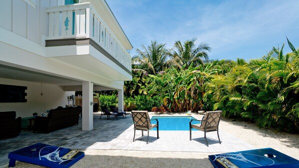 Cannot say enough great things about our stay at Fishful Thinking! First, location is great. Some restaurants and bars within walking distance, many others a short bike ride away. Most importantly though- super close to the beach- about a 3-4 minute walk and beach access at the end of the street! When you need a break from the beach and want to hang poolside, the pool was warm and perfect! Inside of property was clean and comfortable and nicely appointed and updated. Had no issues, so no need to contact the property owner during our stay, but all information was clear and provided prior to our arrival. Would 100% recommend and would 100% stay here again!