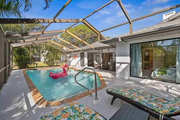Dog-friendly house with pool, lanai, firepit, grill, patio, & enclosed backyard