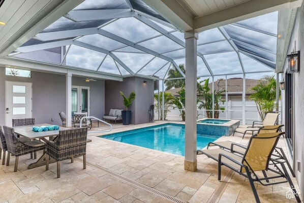 ☀ Screened pool and hot tub in a private courtyard