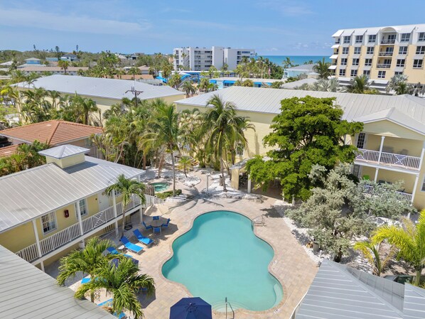 Kenmerken van het resort: voetstappen op het strand, verwarmd zwembad, bubbelbad, kantoor op kantoor, privé- of gemeenschapspatio's, nieuw gebouwd in 2009, gratis draadloze internettoegang, volledig uitgeruste keukens, Avonite-werkbladen, roestvrijstalen apparaten, LCD Flat- Scherm-tv's, dvd-spelers, privé-wasmachine / -droger, ideale siësta-sleutellocatie