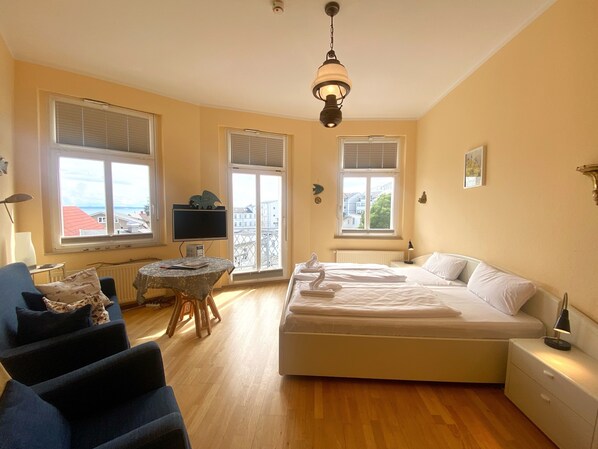 Elke badkamer is voorzien van een douche en een haardroger. In dit appartement in Sassnitz is wifi gratis.