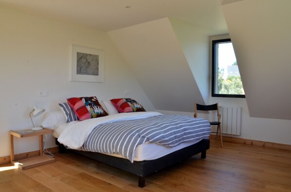 beneden 2 slaapkamers en een badkamer met inloopdouche, bad 2 wastafels en apart toilet. Meubilair en beddengoed zijn nieuw.