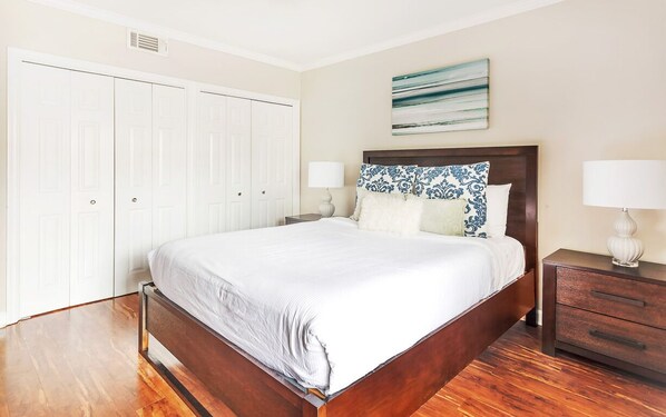 ?De slaapkamer heeft een queensize bed en veel kastruimte, zodat u zich tijdens uw verblijf kunt installeren. De badkamer heeft een grote betegelde inloopdouche en een mooie ijdelheid waar u zich op kunt maken voor een avondje uit in de stad.