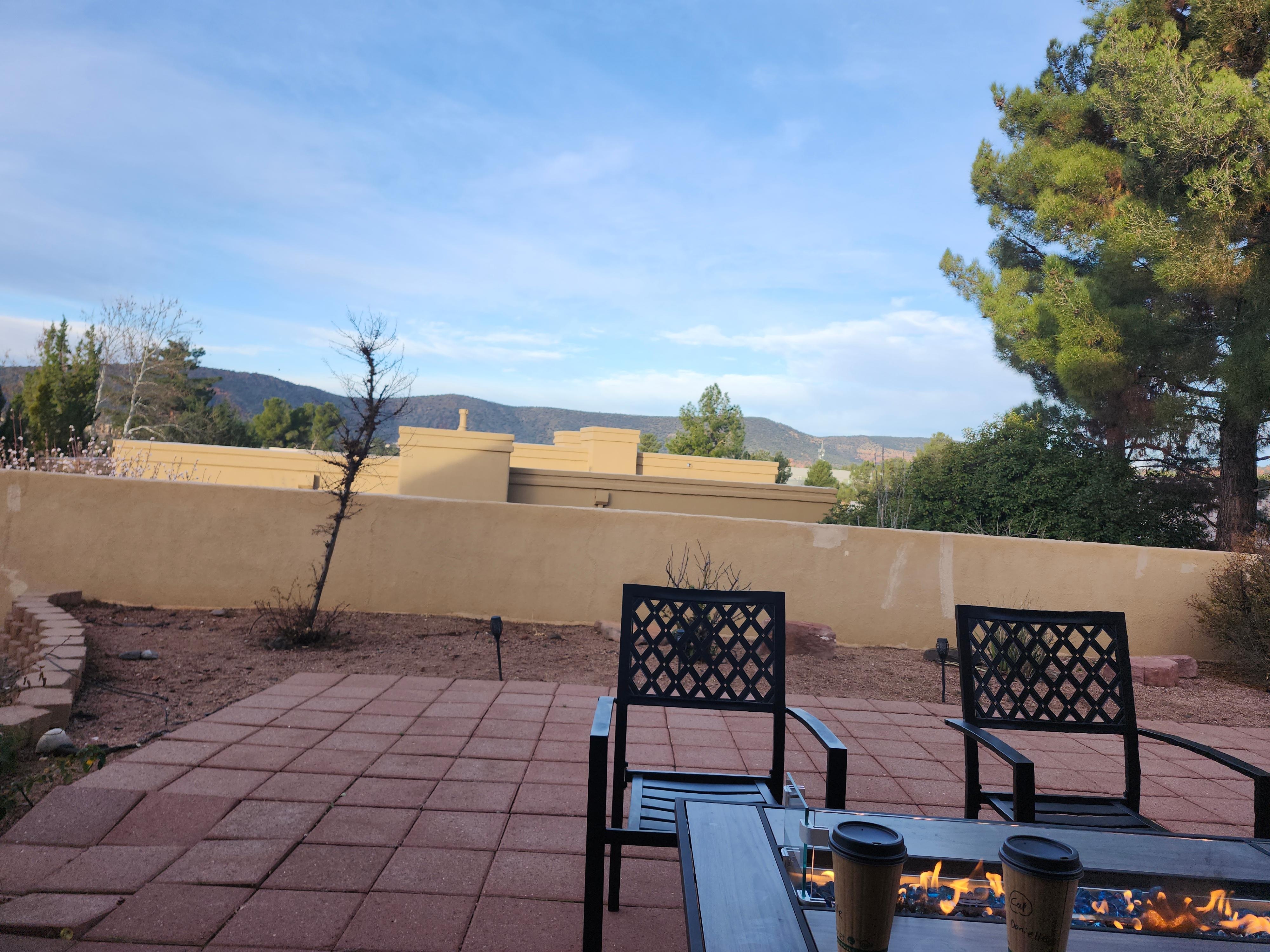 Step outside to a fully fenced backyard, where you can gather around the fire pit, fire up the grill, or simply enjoy the fresh Sedona air from the outdoor seating area with views of Bell Rock in the distance!