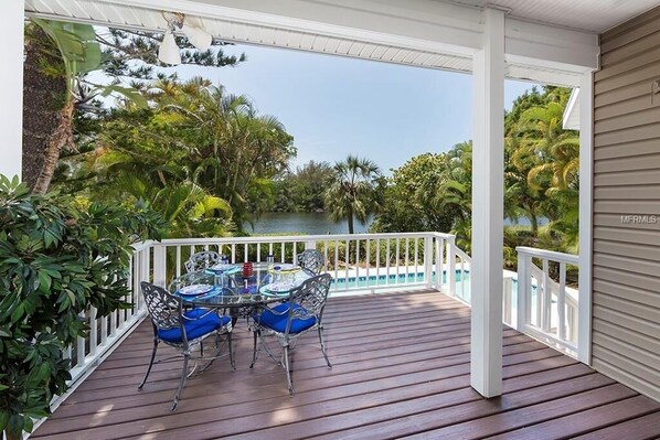 This place is very comfortable and quiet. It's on a closed lagoon so you won't see/hear any power boats, and it's great for kayaking. The house is very close to both Crescent and Turtle beach, and also a kayak/bike rental place near Stickney Point so it didn't take long to get kayaks when we wanted them. The garage is spacious with room for two vehicles. The beds are comfortable and the upstairs bedroom has a beautiful view. The pool is relaxing and well-maintained. One reason I picked this house is it has four bedroom as well as four bathrooms. The middle floor tended to get a little warmer during the day but it also has it's own A/C which was awesome to cool things down quickly at bedtime! The kitchen is very complete, just pick up a few things you like from the grocery store and you'll be all set here. We also used the grill one night and it is in great condition.