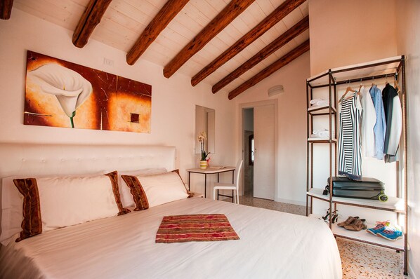 De tweede slaapkamer altijd met een tweepersoonsbed, met dezelfde kenmerken als de eerste en gekenmerkt door een artistieke open badkamer op de zolder en een aangenaam uitzicht op de tuin. Ten slotte heeft de derde slaapkamer een Frans bed, handgemaakte houten en ijzeren meubels, uitzicht op de tuin en een mezzanine badkamer.