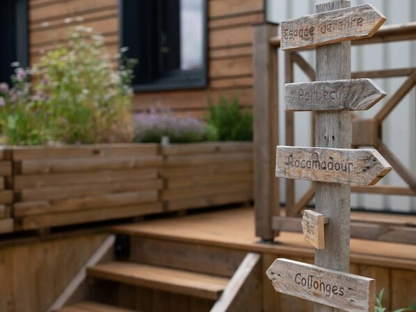 Garden & shared spaces: enjoy a large green garden shared with guests from the two other container houses, and make the most of the outdoor area with a communal barbecue for convivial evenings under the stars.