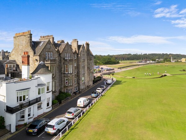 Great location! Quick 2 min walk to the 1st tee of the old course, 10 min walk to the driving range and the Eden Course, 5 min walk to first tee of the New Course and Jubilee. Golfer's dream! Service and accommodations were amazing. I found a new home when I am in St. Andrews.