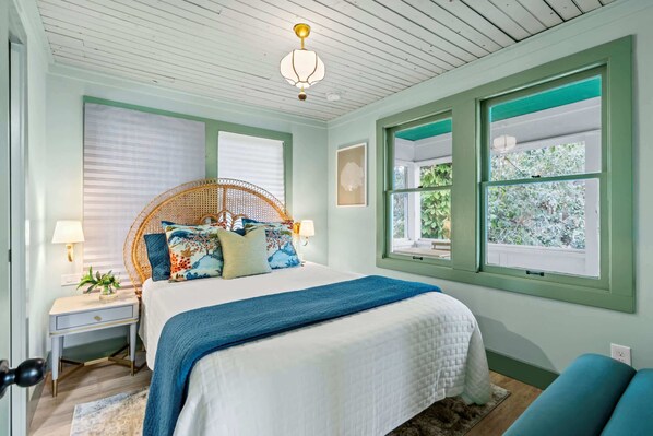 Welcome to this colorful and inviting second-floor apartment, designed for both relaxation and convenience. With bright decor, modern furnishings, local artwork, and a trolley stop just a block away, this cozy retreat offers a stylish yet comfortable base for exploring the city with ease.