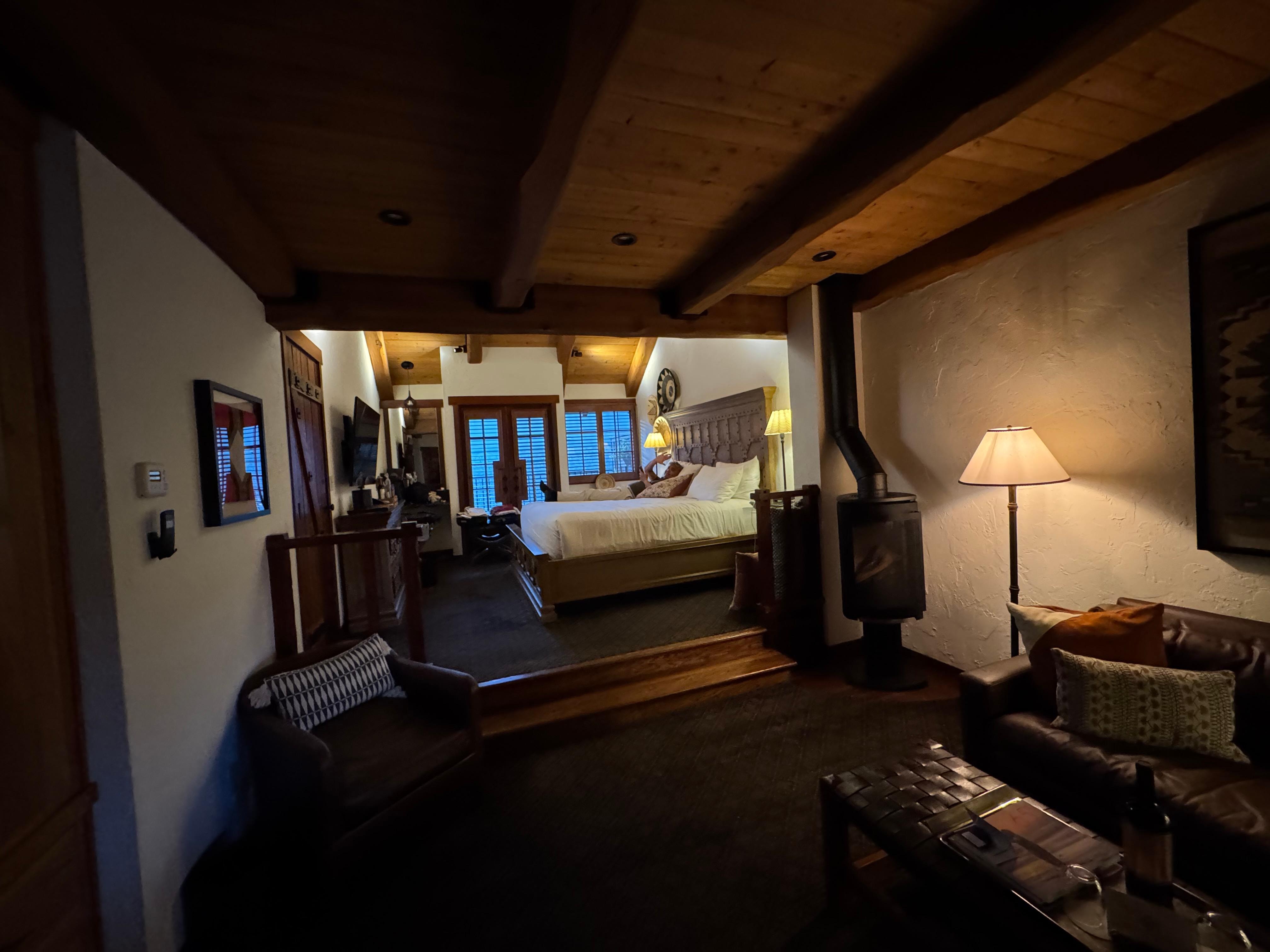 This place is amazing! It is one of the few places that is better than the pictures! Our room had a wood burning stove and a balcony. All of the rooms open out to the center of the property where there is a swimming pool, hot tub, and multiple seating areas with firepits! There is also an outdoor fireplace! Very romantic and great escape for couples!