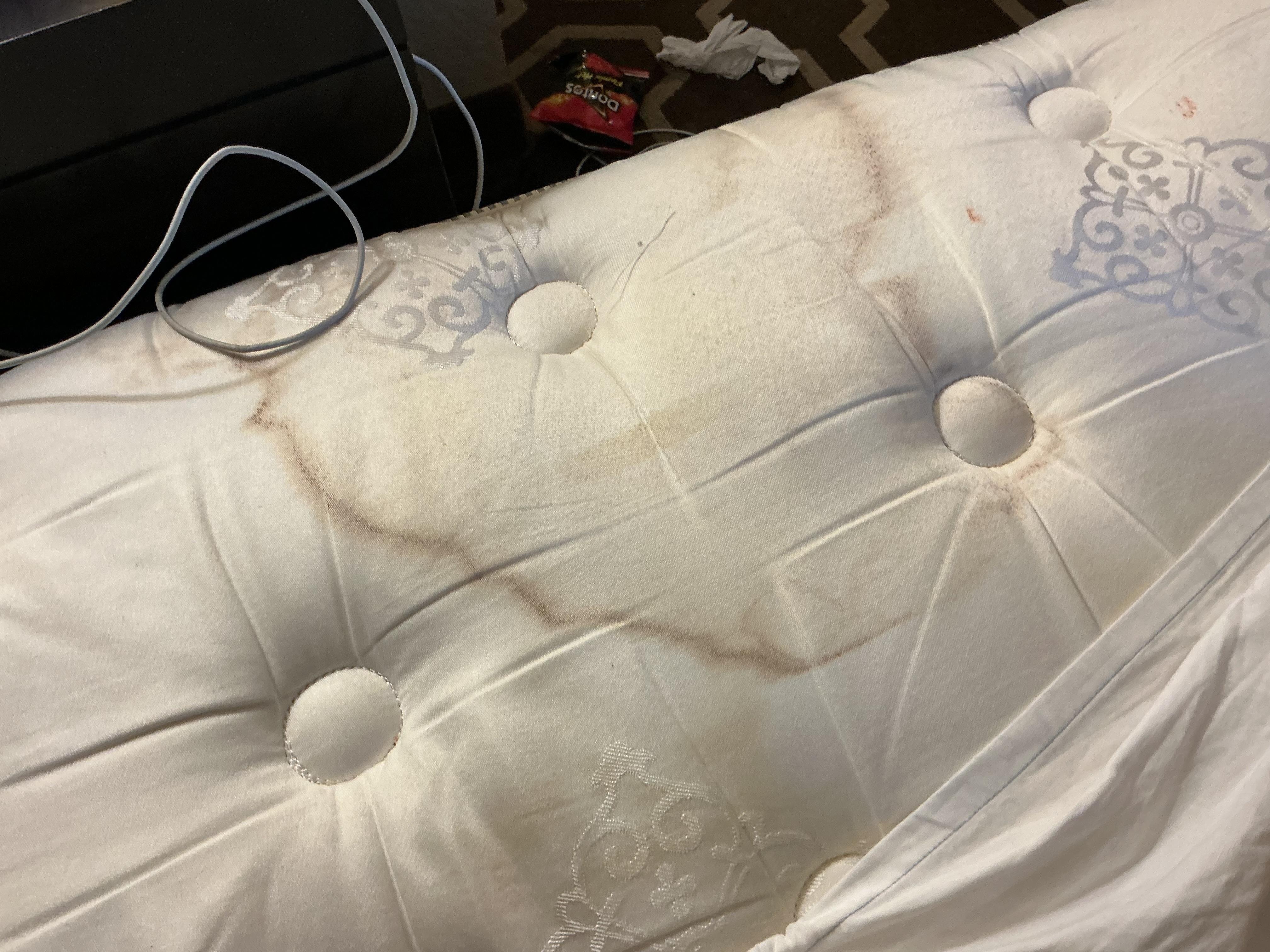 The room was disgusting. Stains on the bedding, on sofa and floors.
