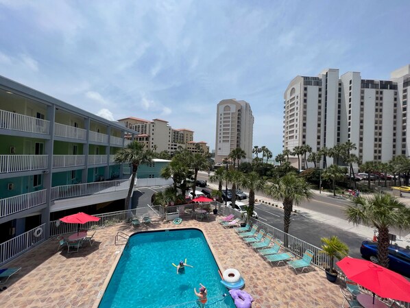 Onze standaard unit is een paradijs voor mensen kijken. Een zicht op het zwembad en alle activiteiten. Deze kamer heeft een queensize bed, 365 vierkante meter aan leefruimte, een eigen badkamer met handdoeken en toiletartikelen, een kitchenette en een flatscreen-tv. De aparte woonkamer heeft een full-size slaper futon en eethoek. Buitenkant gedeeld balkon met zitplaatsen voor twee. Geschikt voor maximaal 4 gasten. Het eigen personeel biedt dagelijkse schoonmaakservice, zodat u achterover kunt leunen en ontspannen!