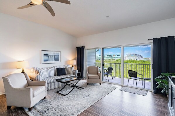Complex in herenhuisstijl, op slechts een steenworp afstand van het strand! Bovenste verdieping biedt een prachtig, vrij uitzicht op de Intracoastal Waterway zowel overdag als 's nachts vanaf een eigen balkon. Lichte, ruime twee slaapkamers, 2 badkamers eenheid (6 personen). De master heeft een queen size bed en twee stapelbedden, 2e slaapkamer heeft queen size bed en 32 "tv. Woonkamer beschikt over 50 "flatscreen-tv en een prachtig uitzicht op de Intracoastal Waterway. Wasdroger. Verwarmd zwembad. ***** Let op: dit appartement heeft een Premium rating. De keukens en badkamers zijn volledig bijgewerkt. Dit appartement overtreft de verwachtingen van de meeste gasten en de standaardcriteria van Plumlee Vacation Rental. *****