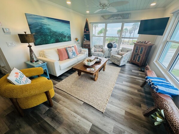 Your guests will find solace in the Queen Guest Bedroom, where the charm of coastal living is encapsulated in every detail. In the living room, beach views unfold like a magnificent canvas, and you'll find yourself drawn to the horizon, where the sky kisses the water.