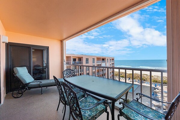 Directe bovenste verdieping uitzicht op de oceaan van GROOT balkon, woonkamer EN slaapkamer (vergelijk met anderen). Bekijk onze NIEUWE VIDEO en MEER foto's van ons appartement. Video is een derde of vierde afbeelding bij het bekijken van alle foto's bovenaan de hoofdpagina.