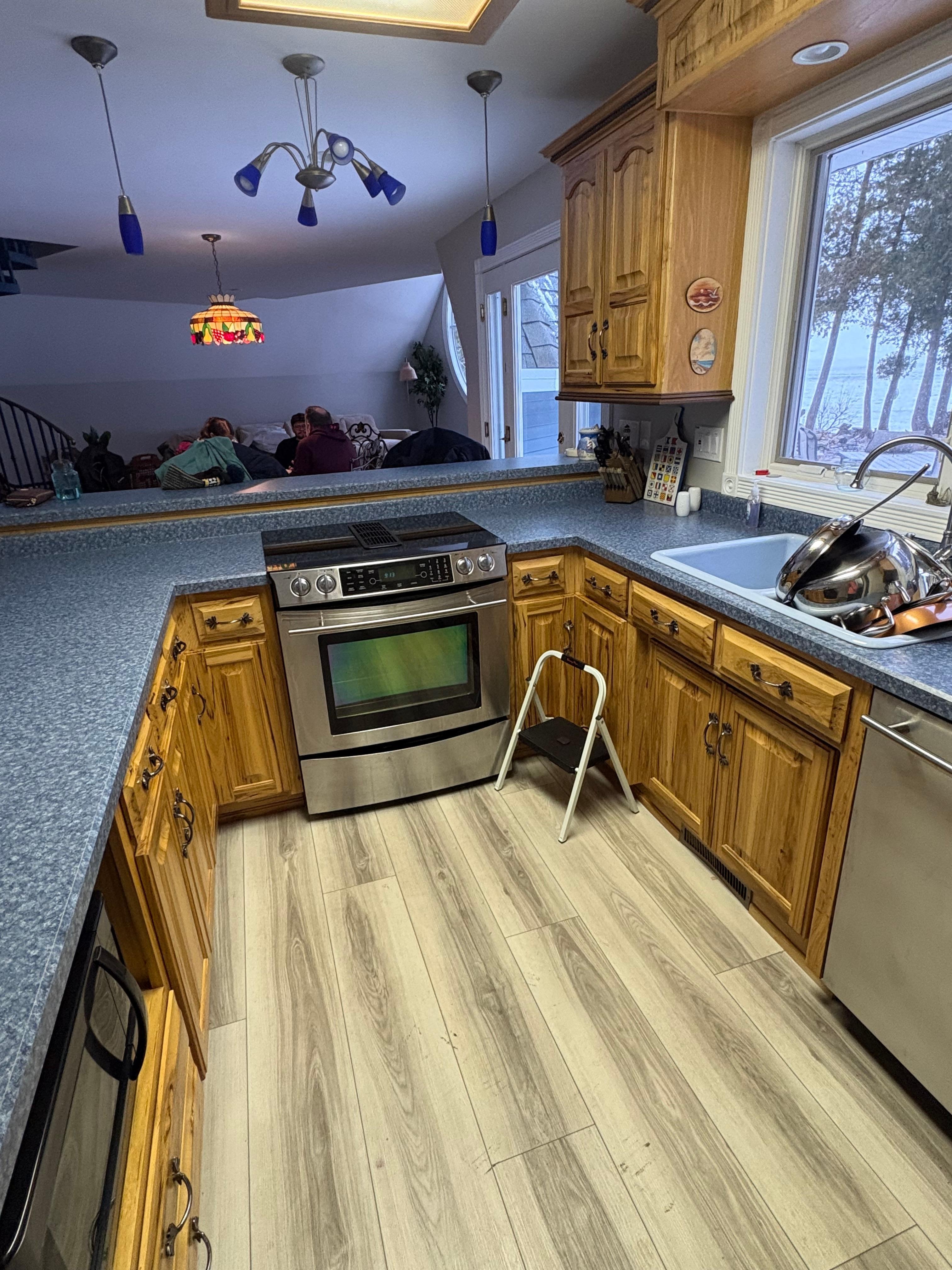 The cheerful, open kitchen has everything you need to prepare meals — from cookware to utensils — plus a drip coffee maker to help ease into the day. The dining area flows into the living room, making it easy to enjoy meals, games, or conversation all together with plenty of seating across the two tables!