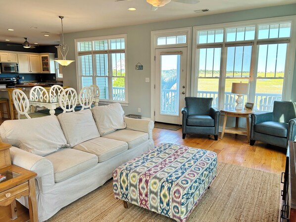 Ga naar het strand, dat net in de straat ligt, of staar verwonderd terwijl de kustvogels hun stille schoonheid tonen terwijl ze op zoek zijn naar hun diner in de kustrijke moerasgrassen. Dit is de plek met alle afwisseling die het eiland te bieden heeft! Dit prachtige huis is perfect voor het gezin dat wil ontspannen en het rustig aan wil doen, of het gezin dat de avonturen in het waterleven wil!