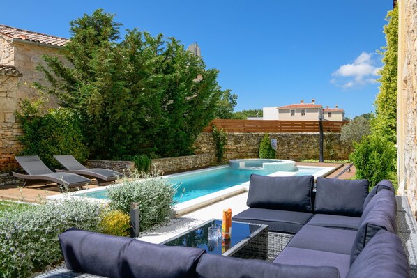 Villa voor gezinnen, met een buitenzwembad en een sauna