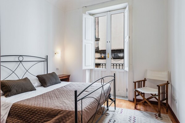 The apartment, located in a pedestrian street full of restaurants and typical shops, opens onto the living area, furnished with a large sofa bed, a television, a dining table and a fully-equipped kitchenette with oven and kettle. The sleeping area boasts a bedroom with a queen-size bed, balcony and en suite bathroom with shower.