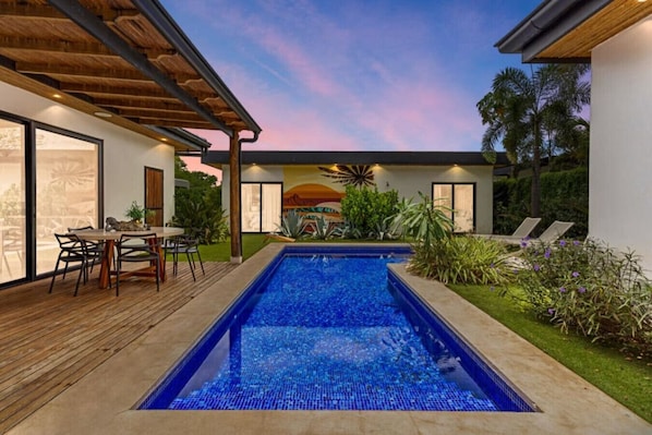 Beautiful home in a great location. Very close to the beach and downtown Tamarindo but far enough away to feel secluded. The patio and private pool was one of our favorite features with surround sound that played outside and created the exact vibe I traveled to Tamarindo to experience. The bedrooms have some of the most comfortable mattresses I’ve slept on in a vacation rental. The casita also has a private office with wifi that was helpful for a few conference calls I had to make while there. The host was super responsive and friendly if we needed help or had questions about the property and things to do around town. I’ll absolutely reserve this home again on my next trip to Tamarindo.