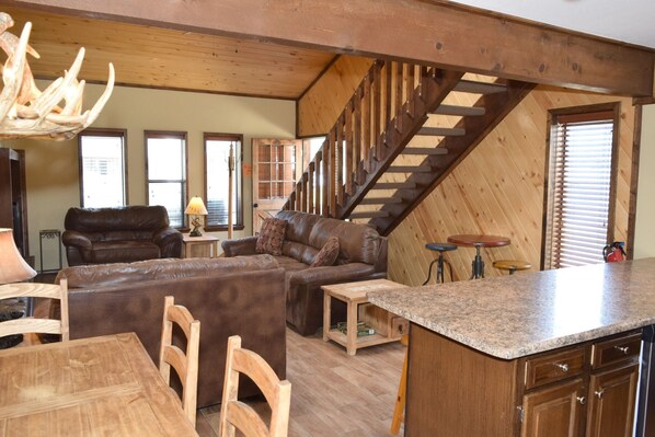 The Last Chance Cabin ligt dicht bij de rivier en heeft een prachtig uitzicht op het skigebied en de omliggende bergen. Het is op loopafstand van winkels, restaurants en de Red River Ski Area. Dit 3 slaapkamers en 2 badkamers cabine is voorzien van een grote open woon-en eetkamer, die zeer geschikt voor een grote familie is. Er is een slaapkamer beneden met een queen size bed en een complete eigen badkamer. Boven zijn er twee slaapkamers: een met een kingsize bed en een flatscreen-tv, en de andere heeft een set van full-sized stapelbedden (in tegenstelling tot de standaard twin-formaat), evenals een televisie. Er is een complete badkamer in de gang boven. Voorzieningen zijn onder andere een volledig uitgeruste keuken, gas open haard in de woonkamer met full-sized slaapbank, eigen terras, en kabel-tv-netwerk. Er is ook een grote speeltuin in de buurt voor de kiddos!