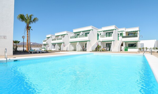 Op slechts 5 minuten lopen van het gouden zandstrand Playa de los Pocillos ligt het appartement Mimosa B1 in een rustig wooncomplex met een zwembad in de levendige stad Puerto del Carmen. Het appartement bevindt zich op de begane grond en bestaat uit een woon/eetkamer met een slaapbank (voor één persoon), een goed uitgeruste keuken met barkrukken, een slaapkamer (met 2 eenpersoonsbedden, die ook tegen elkaar geschoven kunnen worden) en een badkamer en is daarom geschikt voor 3 personen. Extra voorzieningen zijn Wi-Fi, een wasmachine en een televisie. Op je overdekte privéterras kun je samen aan tafel genieten van verse maaltijden met uitzicht op enkele typische, tropische planten van Lanzarote. In de gemeenschappelijke buitenruimte van het wooncomplex (met in totaal 30 appartementen) vind je een zwembad met ligstoelen, een kinderbad en een buitendouche. Deze zijn het hele jaar door geopend. Bruin onder de warme zon met een goed tijdschrift en neem een duik met je geliefden. Met slechts 10 minuten lopen (of 800 m) bereik je gemakkelijk supermarkten, restaurants, een fietsverhuur en ijswinkels. Een winkelcentrum ligt bovendien op slechts 300 m afstand en een bushalte bevindt zich op 5 minuten lopen van het appartement. Het absolute hoogtepunt van het appartement is echter de nabijheid van het strand Playa de los Pocillos, dat op slechts 400 m of 5 minuten lopen ligt. Hier kun je een fietstocht maken over de levendige promenade, op het zachte, gouden zand van het strand liggen of in de golven van de uitgestrekte oceaan waden.