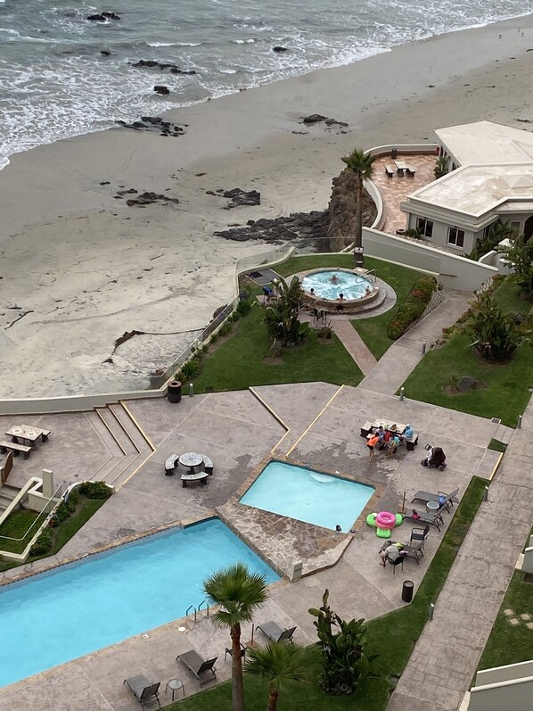 BEAUTIFUL CONDO "PETER PAN" 904-TOWER 2. SITUATED OBVIOUSLY ON 9TH FLOOR WITH THE MAGNIFICENT PACIFIC OCEAN FRONT. INCREDIBLE SMOOTH BEACH WITH NO ROCKS WITH EASY ACCESS. IMMACULATE 2 POOLS AND 3 JACUZZIS. AND CHILDREN POOL. THE CONDO HAS 2 BEDROOMS AND TWO FULL BATHS, ONE WITH BATHTUB. FULLY EQUIPPED KITCHEN, DINNING AND TV AREA. EACH ROOM HAS A TV. BALCONY WITH SOFAS AND TABLE. IT HAS SUN BLOCKING CURTAIN. COMPLETELY SECURED 24/7. PARKING AVAILABLE FOR ONE CAR FOR $75.00 EVERYTHING IS NEAR BY. DOWNTOWN ROSARITO IS 6 MINUTES DRIVING.