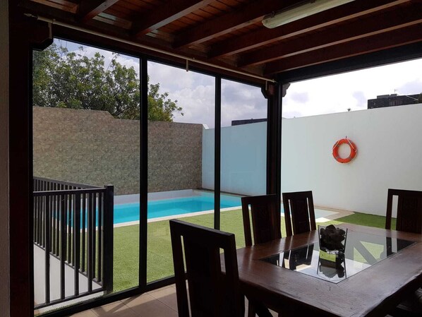 Dit vakantiehuis in Tinajo is voorzien van een privézwembad en een keuken
