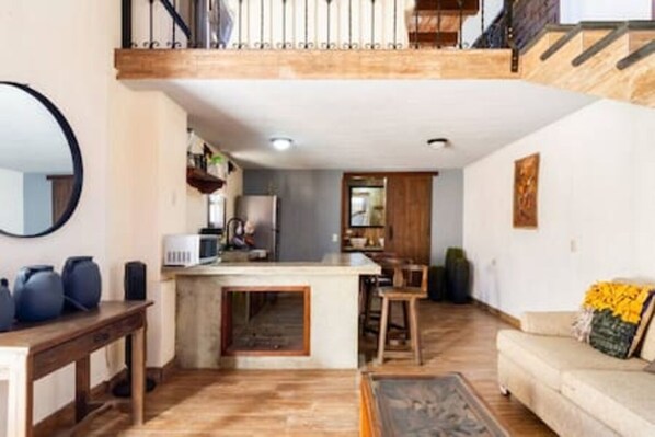 Dit vakantiehuis in Tlajomulco de Zúñiga is voorzien van een keuken en een open haard