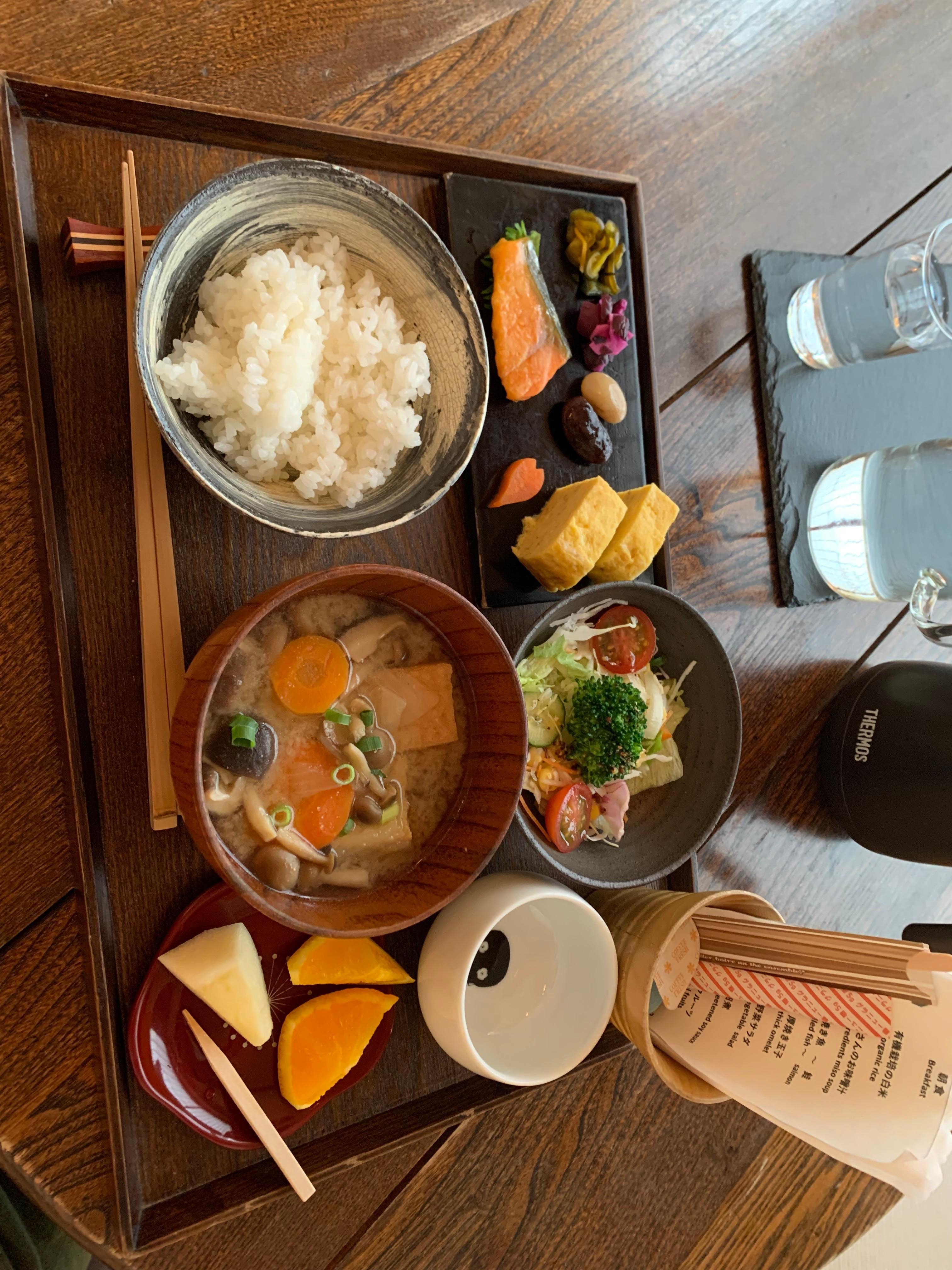 Lovely little place to stay. Love the tea room ryokan theme. Everyone is very friendly and helpful. The breakfast was a lovely traditional Japanese breakfast. Probably one of the best places I’ve ever stayed. Even went home with a little polaroid photo of my self in front of the building. If you have the money it's definitely worth the experience.