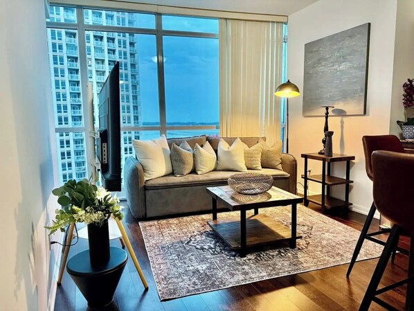 City appartement, uitzicht op meer